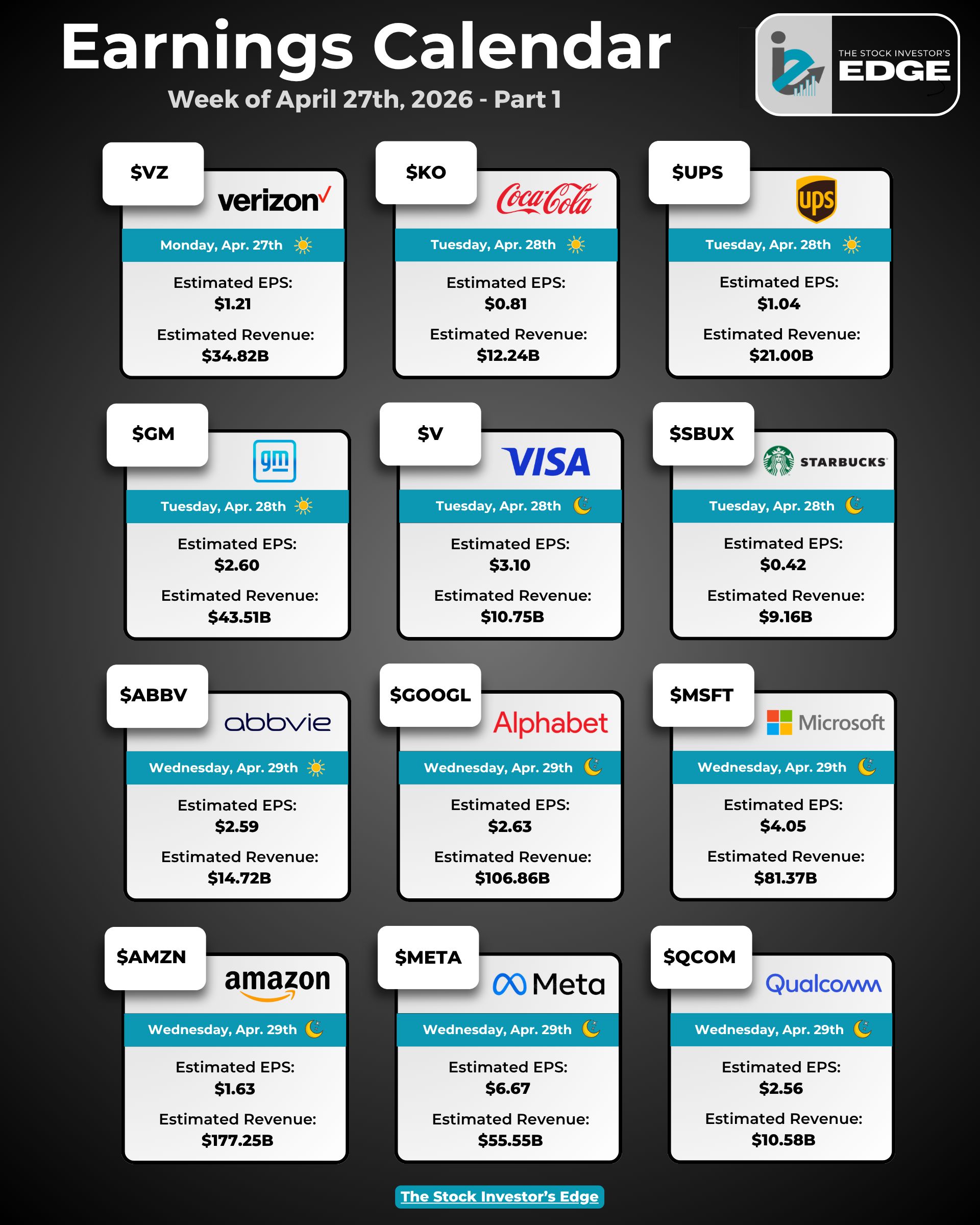 Wednesday 4/29: Alphabet, Microsoft, Amazon, Meta, Qualcomm, AbbVie, and VICI