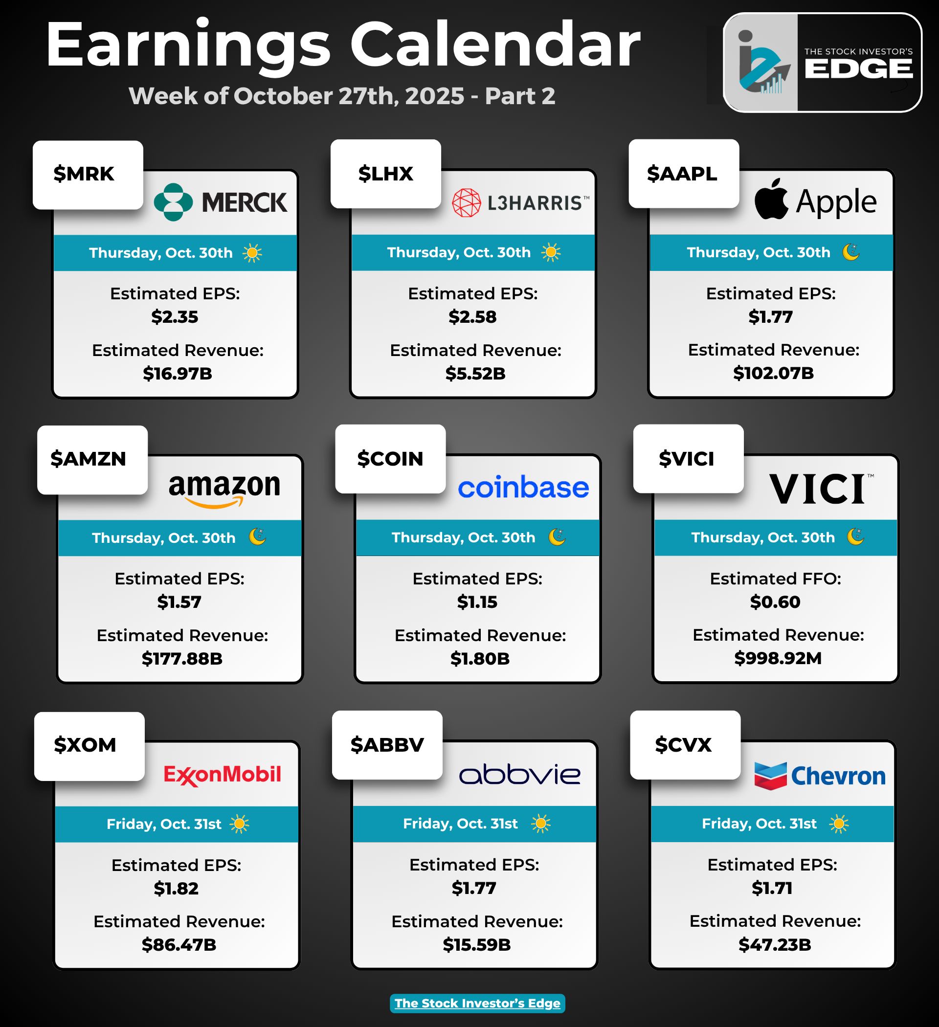 Thursday 10/30: Apple, Amazon, Eli Lilly, Mastercard, Merck, Coinbase, L3Harris, and VICI